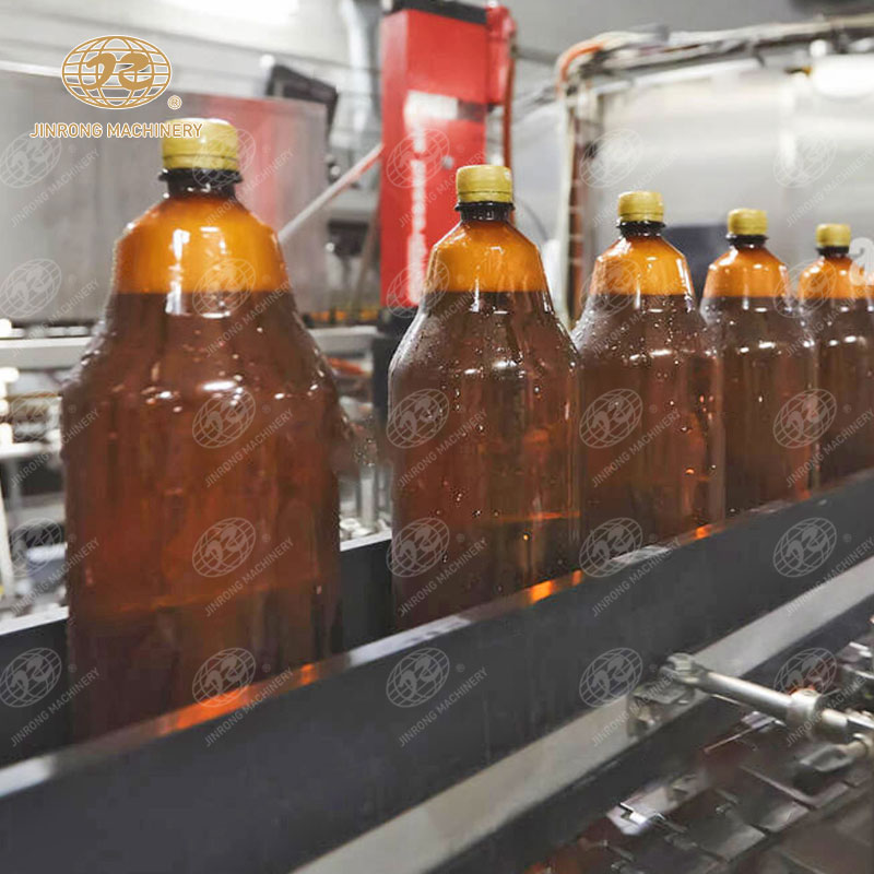 PET瓶啤酒生產(chǎn)線通過沖洗、灌裝和旋蓋等工序,實(shí)現(xiàn)了啤酒的自動(dòng)化、高效化生產(chǎn)。其中,沖洗過程保證了瓶子的清潔度;灌裝過程確保了啤酒的純凈度和口感;旋蓋過程則保證了啤酒的密封性和質(zhì)量。整個(gè)生產(chǎn)過程中,啤酒灌裝設(shè)備采用先進(jìn)的技術(shù)和精密的控制系統(tǒng),確保了啤酒的質(zhì)量和口感,提高了生產(chǎn)效率。