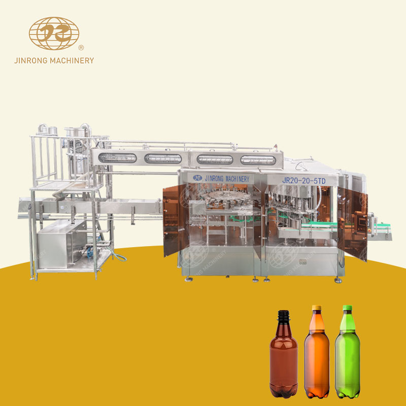 PET瓶啤酒灌裝生產(chǎn)線在灌裝前對(duì)PET瓶進(jìn)行沖洗,以去除瓶?jī)?nèi)的雜質(zhì)和殘留物,確保啤酒的純凈度和口感。